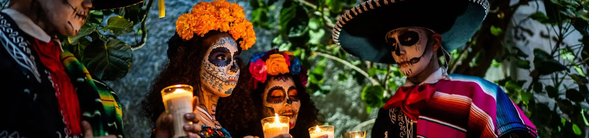 - Au Mexique, " El dia de los muertos" , le jour de la fête des morts, qui est issu des rites Aztèques, associe offrandes, lumières, chants, chemins de fleurs…